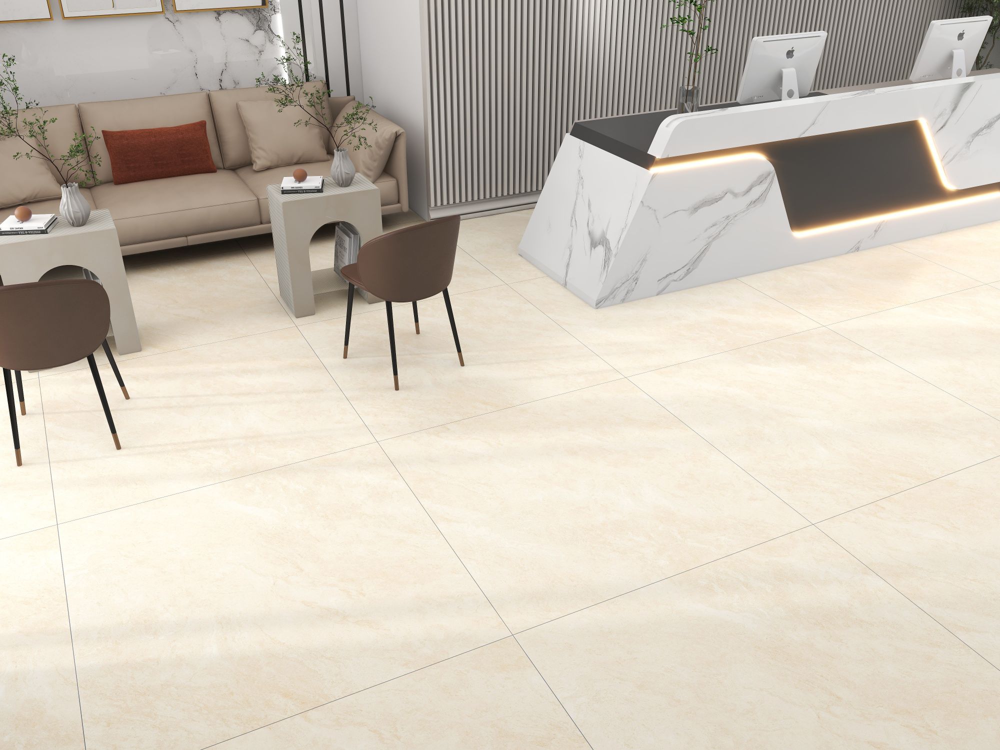 - Độ bền vượt trội: Xương gạch Porcelain chất lượng cao giúp sản phẩm không bị cong vênh, chịu được mật độ đi lại lớn.