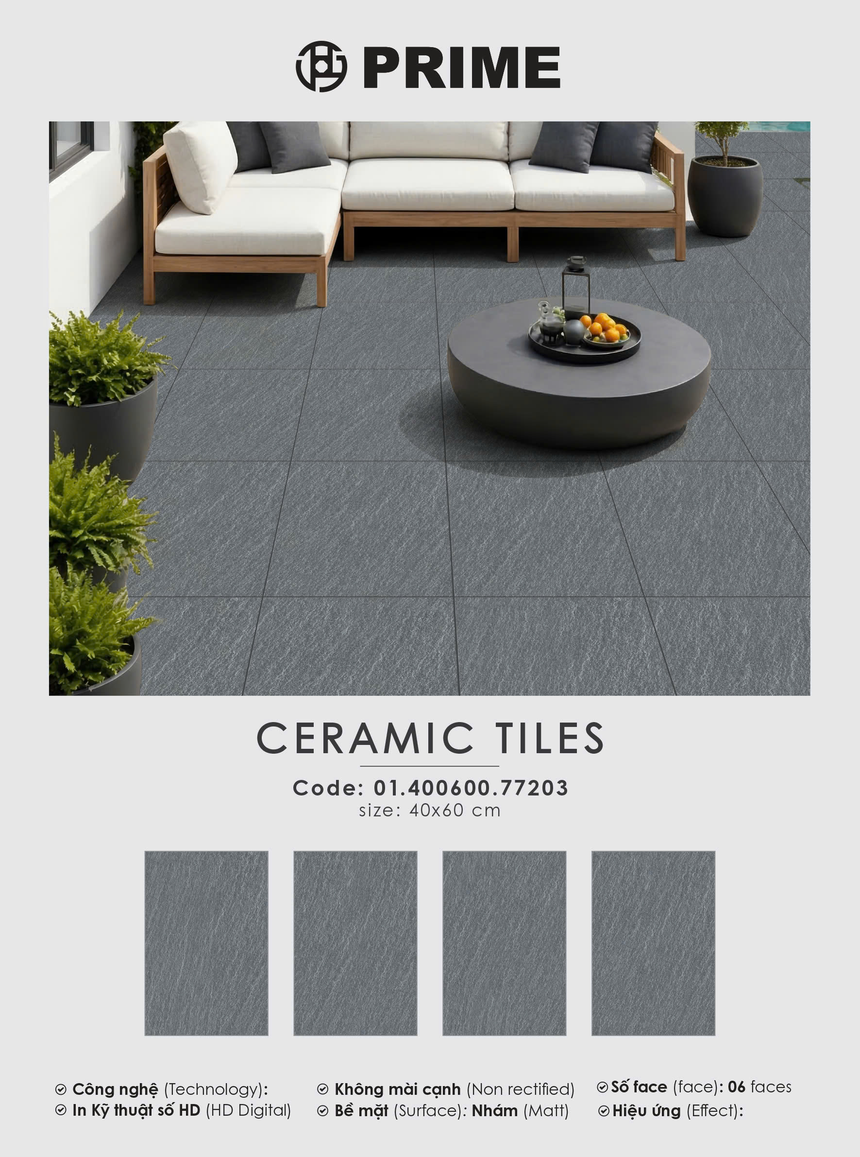 Trải qua quá trình nghiên cứu và phát triển sản phẩm kỹ lưỡng để phù hợp với khí hậu Việt Nam, Prime mang đến những dòng sản phẩm gạch lát nền không chỉ chất lượng vượt trội mà giá thành cạnh tranh.